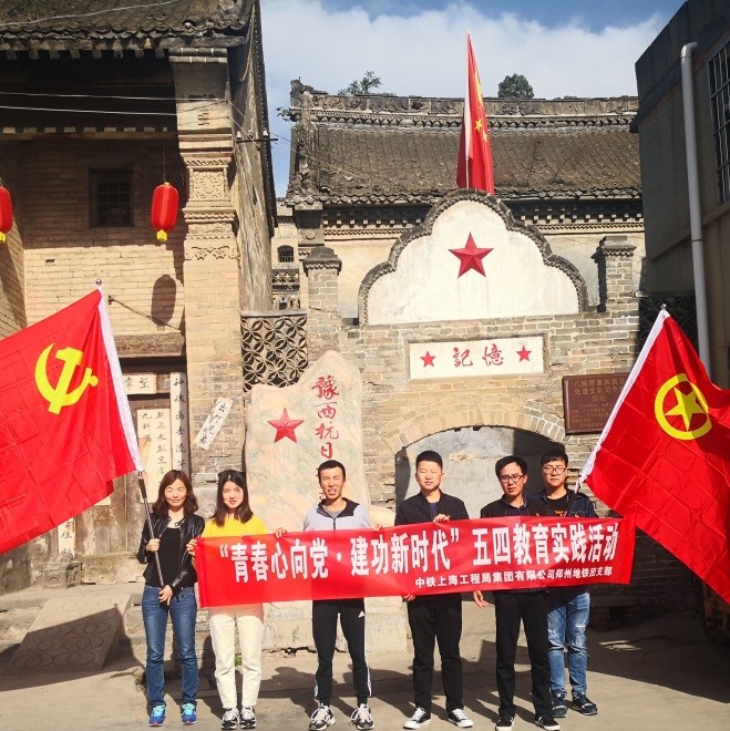 5月1日,鄭州市政控制節點工程土建07標項目黨支部組織開展“青春心向黨 建功新時代”教育實踐活動。項目部年輕黨員及全體團員到豫西抗日根據地紀念館參觀學習,在紀念館講解員的帶領下依次對各個展
