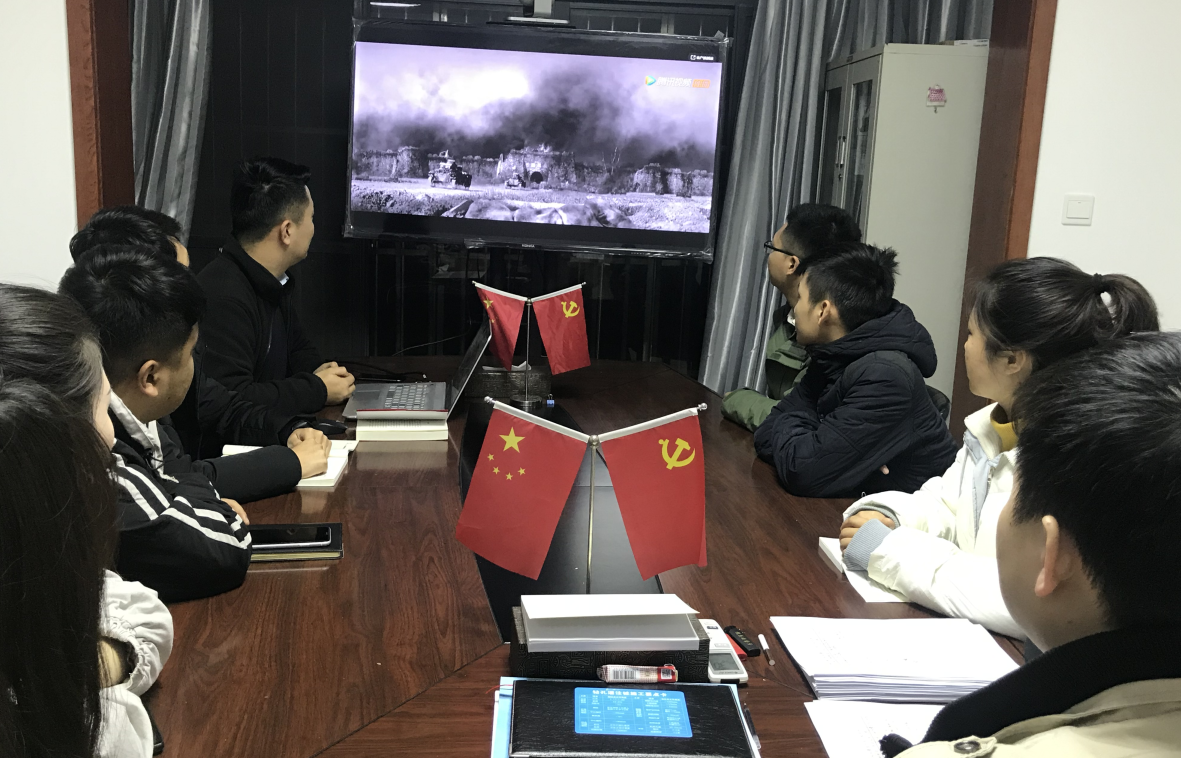 公司武漢地鐵張家灣停車場項目部組織青年職工觀看“國家公祭日”相關主題影片