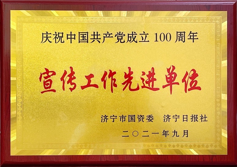 近(jin)日,公(gong)司榮獲濟寧市國資委、濟寧日報社聯合授予的(de)“慶祝中(zhong)國共產黨(dang)成立100周年宣(xuan)傳工作(zuo)先進單位(wei)”稱號。...