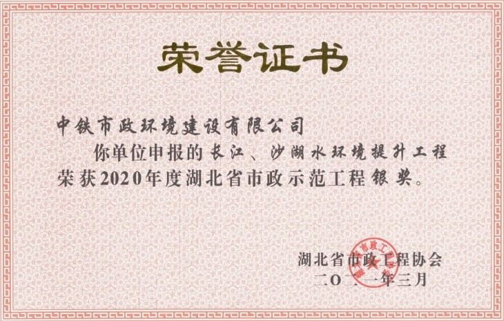 近日,2020年湖北省市政(zheng)示范工程評選結果公(gong)布,公(gong)司長江、沙湖水(shui)環境提升工程項目(mu)喜獲湖北省市政(zheng)示范工程銀獎。...