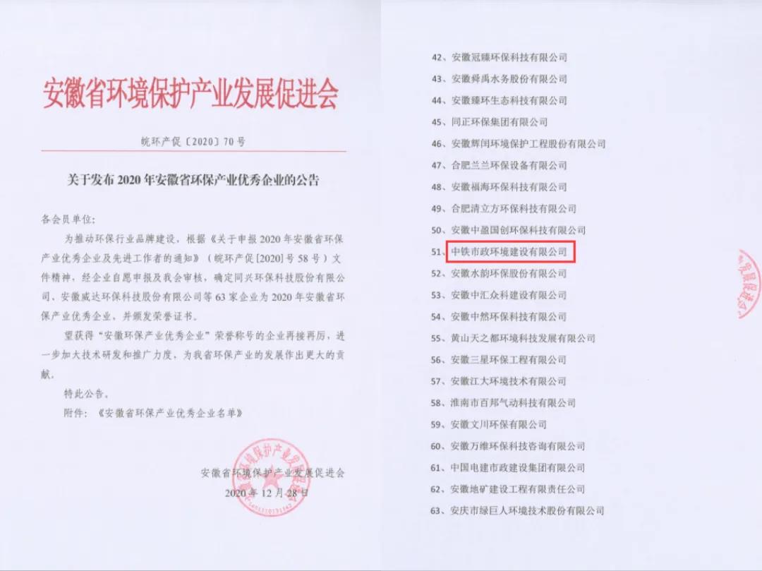 2020年12月,安(an)徽省環(huan)境保(bao)護產業(ye)(ye)發展促(cu)進(jin)會(hui)發布“2020年安(an)徽省環(huan)保(bao)產業(ye)(ye)優秀(xiu)企(qi)業(ye)(ye)”公告(gao)、“2020年安(an)徽省AAA級環(huan)保(bao)施(shi)工示(shi)范工地”通知及(ji)“2020年安(an)徽省環(huan)保(bao)產業(ye)(ye)優秀(xiu)企(qi)業(ye)(ye)及(ji)先(xian)進(jin)工作者”的公告(gao)。...