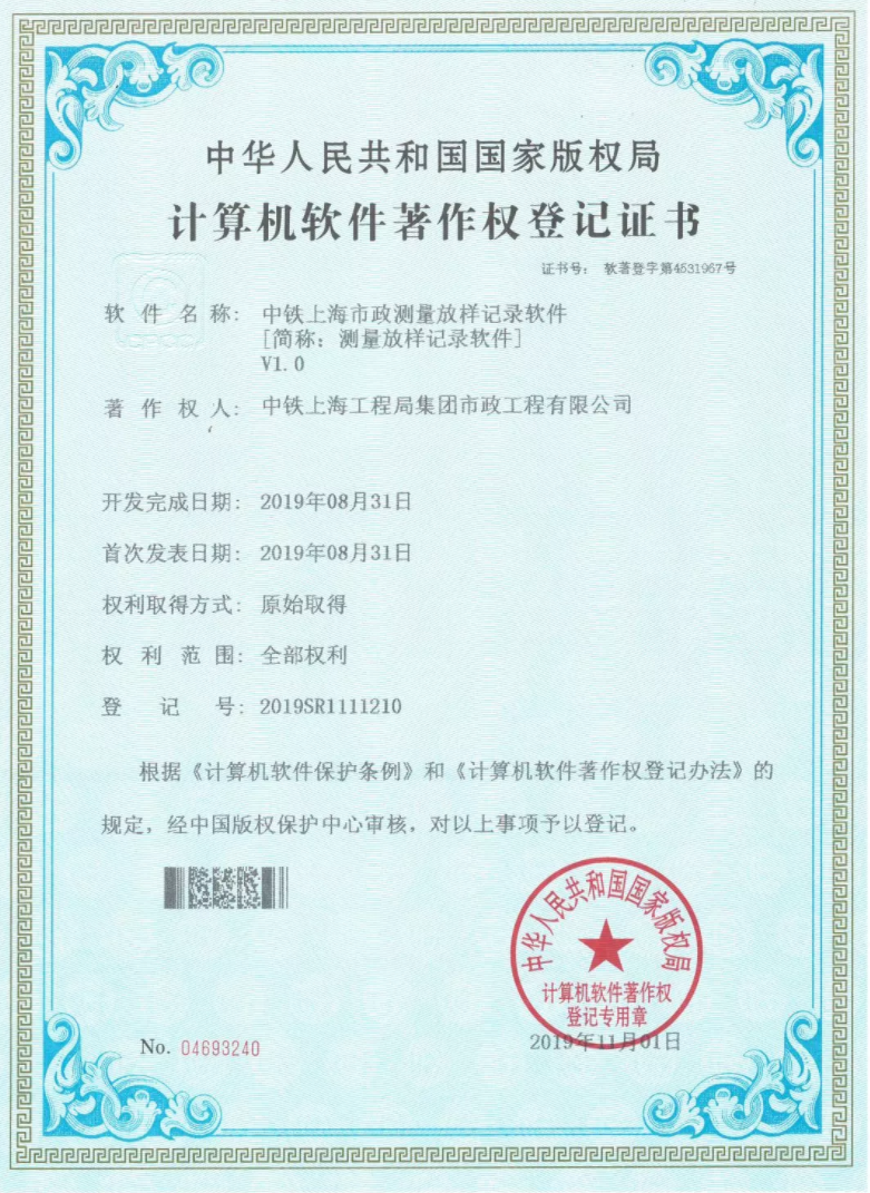 近日,從國(guo)家(jia)版(ban)權局傳來喜訊,公(gong)司技術創新(xin)工(gong)作(zuo)又獲新(xin)突(tu)破!公(gong)司自主研發的“中鐵(tie)上海(hai)市(shi)(shi)政測量放樣記錄軟件”“中鐵(tie)上海(hai)市(shi)(shi)政基(ji)于ProStructures鋼筋計(ji)量軟件”通(tong)過中國(guo)版(ban)權保(bao)護中心審核,獲得(de)國(guo)家(jia)版(ban)權局計(ji)算機軟件著作(zuo)權授權,并取得(de)了(le)著作(zuo)權登記證書(shu)。...