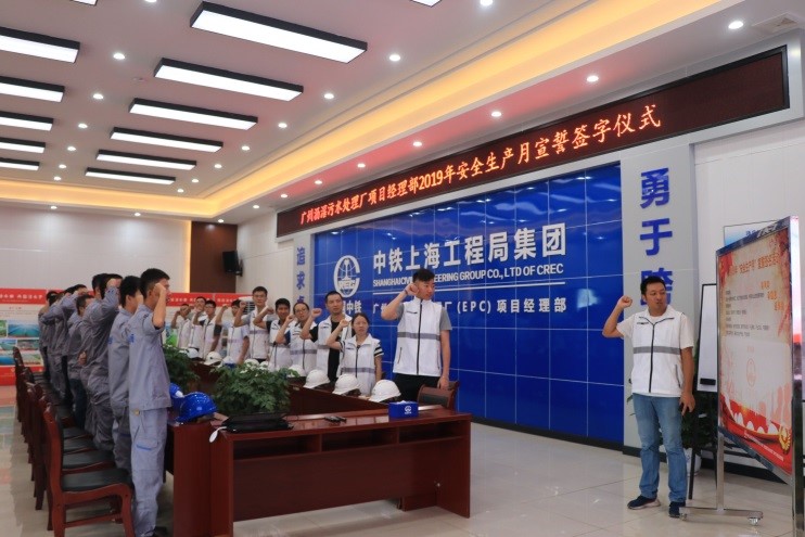廣(guang)州(zhou)瀝滘(jiao)污水處理廠項目部:組(zu)織全體職工進行2019年安全質量集體宣(xuan)誓,并(bing)聯合業主(zhu)、監理單(dan)位在(zai)會議室舉行簽字儀式。...