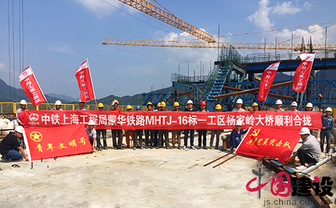 9月7日,經參建人員近5小時的連(lian)續奮(fen)戰,由中鐵上海局蒙(meng)華(hua)鐵路(lu)MHTJ-16標(biao)段一(yi)工區(qu)承(cheng)建的楊家嶺大橋中跨(kua)合(he)龍段混凝土順(shun)利澆(jiao)筑(zhu)完成(cheng),標(biao)志(zhi)著蒙(meng)華(hua)鐵路(lu)晉豫管段唯一(yi)左右分幅(fu)、斜跨(kua)三淅高速公路(lu)、采用菱形掛籃懸臂灌注法施工、最大跨(kua)度連(lian)續梁大橋——楊家嶺大橋順(shun)利合(he)龍。