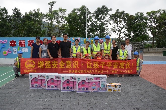 項目兩位女員工與丈夫不在一個項目部,獨自帶小孩工作生活,工程項目繁忙,家庭也不能團聚,為使員工子女過上一個有意義的兒童節,把項目“職工小家”建設工作落到實處,項目部特意為小朋友挑選適合的禮物。6月1日,項目黨支部書記賈述榮代表項目部向2名小朋友送去節日禮物,在為小朋友們送去祝福的同時,也向員工的辛勤工作表示了衷心感謝,并特意給她們放假半天,帶孩子走出項目部開展親子互動活動,項目青年員工與2名小朋友進行了互動游戲。