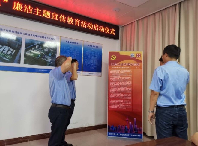 福州工程項目開(kai)展(zhan)“清風市(shi)政”廉潔主題宣傳(chuan)教(jiao)育活動。6月7日下午,福州工程項目黨支部舉行第三屆企業文化節“清風市政”廉潔主題宣傳教育活動啟動儀式。會上,項目黨支部書記劉進春介紹了本項目的具體活動實施方案和工作部署,并對項目全體員工進行工作動員和提出要求。隨后,項目職工集體現場觀看《忠廉愛國,十代將門》廉政文化教育片,以谷府折家“忠廉”家風為榜樣,引導大家從自身做起,重視家風建設,樹立忠于國家、以廉為榮的價值觀。最后,項目領導班(ban)子成員進(jin)行(xing)了廉潔(jie)從業公(gong)開承(cheng)諾,并依次在(zai)承(cheng)諾公(gong)示牌上進(jin)行(xing)簽名,紛(fen)紛(fen)表示將自覺踐行廉(lian)潔從業承諾內容(rong),堅(jian)持(chi)遵規守(shou)紀、廉(lian)潔從業,為全體職工做好(hao)“忠廉”表率。(王迪)
