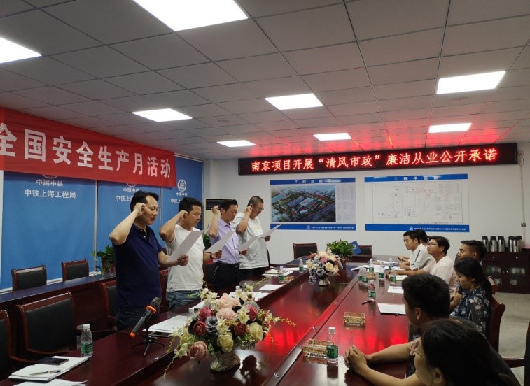 南京浦口水(shui)廠改擴建項(xiang)目部組(zu)織開展項(xiang)目領導人員(yuan)廉潔(jie)從業(ye)公開承諾活(huo)動。6月12日,南京工程項目黨支部組織浦口水廠改擴建項目部領導人員開展廉潔從業公開承諾活動,項目部全體員工參加。會上,項目黨支部副書記關立華傳達學習了公司黨委關于開展“清風市政”廉潔主題宣傳教育活動的通知,接著組織全體員工觀看了廉潔教育警示片《沉淪》,通過違紀違規受到懲處的真實案例,警示大家進一步增強紀律意識、規矩意識和責任意識,自覺做到遵規守紀、廉潔從業。隨后,項目部領導班子成員在全體員工面前進行廉潔從業公開承諾,并在承諾公示牌上逐一簽名。會后,項目黨支部將領導人員的廉潔從業承諾書在駐地黨務公開欄進行公示,廣泛接受職工群眾監督。(劉圣濤(tao))