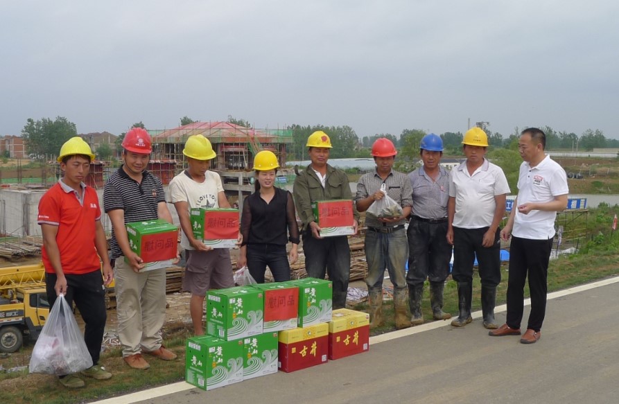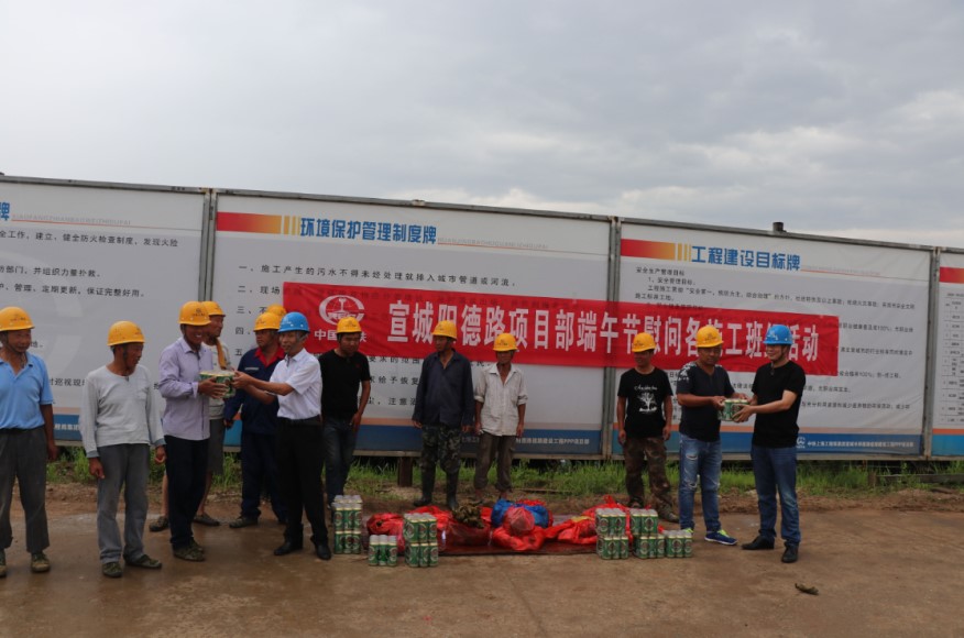 又訊,6月6日上午,宣城陽德路項目部開展“情系農民工、端午節慰問活動”,項目部領導來到施工現場為奮戰在一線的100多名農民工送去了粽子、豬肉、啤酒等慰問品,送去了項目的溫馨祝福,讓堅守在施工一線農民工兄弟真正感受到項目對他們的關愛之情和濃厚的節日氣氛。(唐順林)