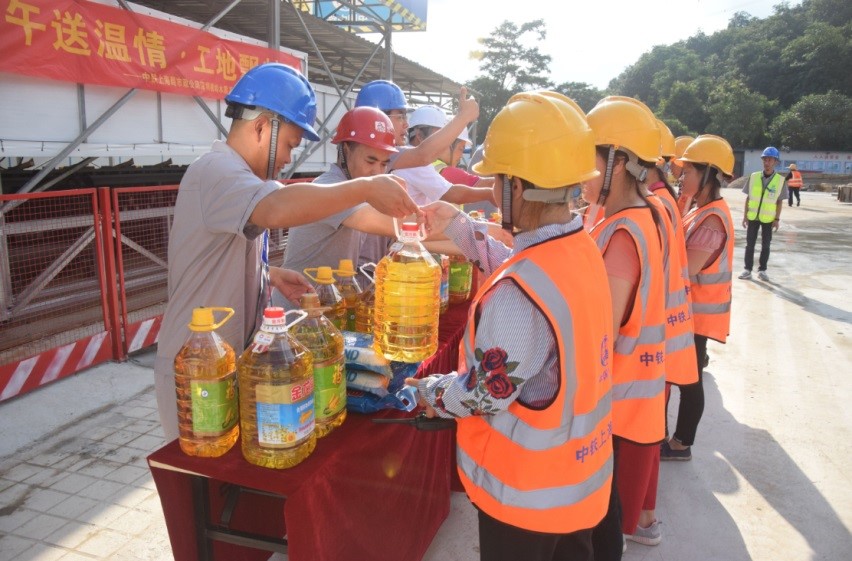 ☆6月6日,成都軌道交通8號線6標項目部工會向奮戰在高溫下的一線員工和協作隊伍送去了濃濃的節日祝福。(王(wang)紅社)