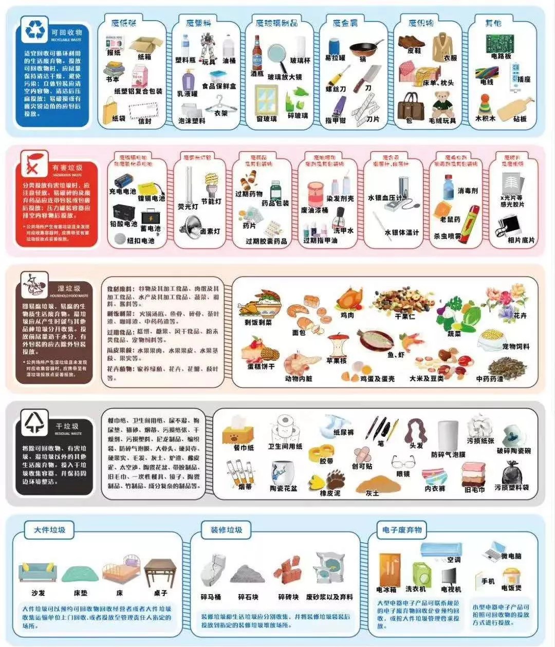 按照可回收(shou)物、有(you)害(hai)垃圾(ji)、干垃圾(ji)和濕垃圾(ji)的生活(huo)垃圾(ji)四分類法(fa)進行垃圾(ji)分類。