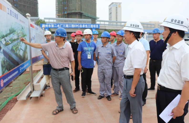 9月9日下午,贛州(zhou)經濟技術(shu)開發(fa)區(qu)管委會主任陳水連到(dao)公司承(cheng)建的贛州(zhou)第二水廠三期工程項目檢查指(zhi)導工作,贛州(zhou)經開區(qu)住建局局長翁毅軍、水務集團副總經理陳俊陪同。陳(chen)水連(lian)深入施(shi)(shi)工(gong)(gong)現場(chang),聽取(qu)了(le)項(xiang)目工(gong)(gong)程概況、施(shi)(shi)工(gong)(gong)推進情況以(yi)(yi)及(ji)(ji)安(an)全(quan)質量管控(kong)等詳細匯報,重點查看了(le)水廠(chang)的(de)(de)整體布局,以(yi)(yi)及(ji)(ji)水廠(chang)與客家大道交叉段控(kong)制性結構聯絡通道的(de)(de)施(shi)(shi)工(gong)(gong)進度。陳(chen)水連(lian)強調安(an)全(quan)責任大于天,在施(shi)(shi)工(gong)(gong)過程中,項(xiang)目部(bu)要嚴(yan)格落實安(an)全(quan)管控(kong)措(cuo)施(shi)(shi),確保施(shi)(shi)工(gong)(gong)安(an)全(quan),樹立良(liang)好的(de)(de)央企形(xing)象。同時要做(zuo)到(dao)科學(xue)組(zu)織、務(wu)實求精、達標創優,確保水廠(chang)建(jian)設(she)按期完(wan)成。