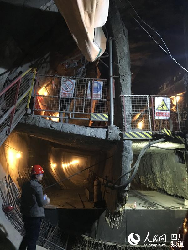 今日下午,記者來到西南交大旁邊的地鐵施工工地,在工作人員的帶領下,下到地下18米的地鐵施工現場。記者看到,隧道洞口被一分為六,隧道內約20米深處傳來了施工人員作業的聲音。