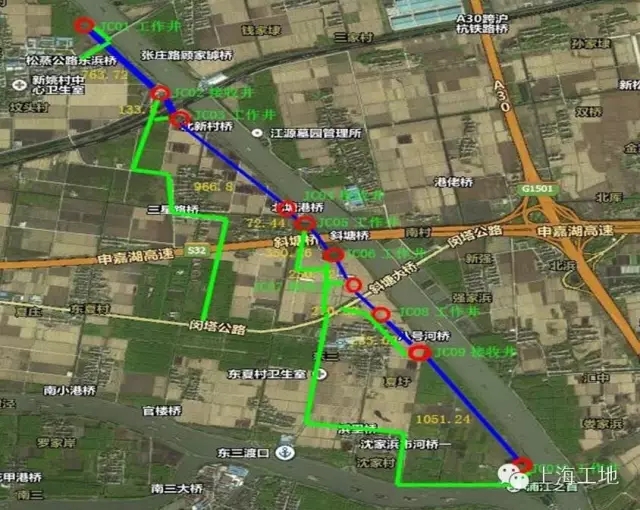頂(ding)管沿線需要穿(chuan)越松蒸公路(斜(xie)塘大橋)、古(gu)松市河、滬(hu)杭(hang)鐵路、S32申嘉(jia)湖高速公路(lu)、閔塔公路(lu)橋、高壓燃氣(qi)管等重大基礎(chu)設(she)施,頂管頂進施工技(ji)術控制要求高;頂管(guan)沿線距離斜塘河較近,頂管(guan)施工危險程度較高。