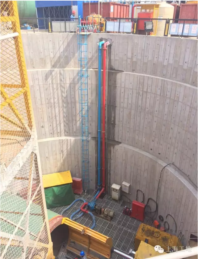 紅藍(lan)兩根管子一(yi)(yi)根注水一(yi)(yi)根排送泥漿入指(zhi)定泥漿池,完全不用擔心運(yun)送渣土揚塵的困(kun)擾。