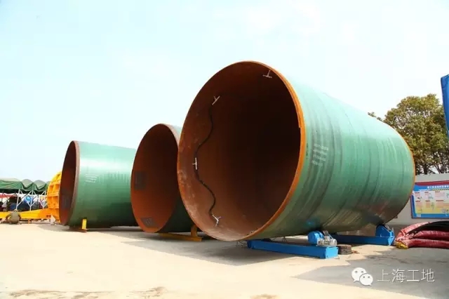 工程的區間最長距離1064米,今天下井推(tui)送(song)的頂管(guan)長度為(wei)270.39m,管徑為Φ3800,管道中心標高為-8.000m,采用Q235B鋼板直縫埋弧焊接,鋼(gang)管鋼(gang)板(ban)厚度為36mm。由JC08#工作井頂向JC07#接收井推(tui)送,這段區間距離為200多米,每(mei)天大約推(tui)送20米左右(you)。