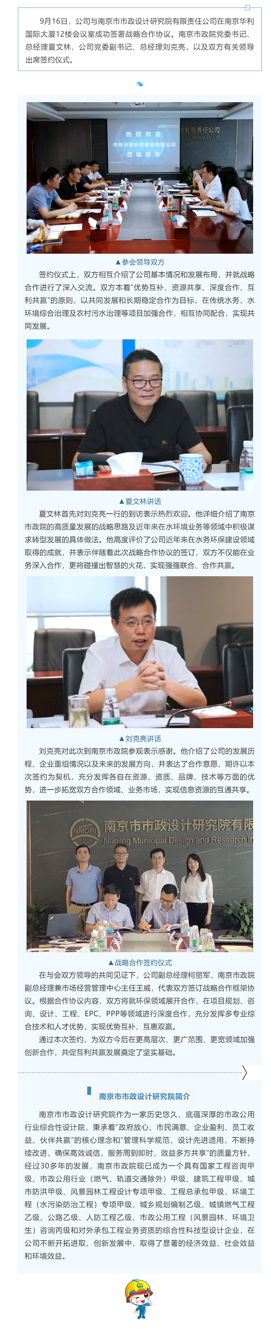 中鐵市政環境建設有限公司與南京市政院簽署戰略合作協議