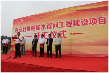 9月29日上午,公司(si)中(zhong)標的(de)宜昌(chang)市(shi)遠安(an)(an)縣(xian)(xian)(xian)(xian)(xian)縣(xian)(xian)(xian)(xian)(xian)城(cheng)輸水管網工(gong)(gong)程(cheng)在管線的(de)起點舉行了開工(gong)(gong)儀(yi)式。遠安(an)(an)縣(xian)(xian)(xian)(xian)(xian)縣(xian)(xian)(xian)(xian)(xian)委(wei)(wei)副(fu)(fu)書記、縣(xian)(xian)(xian)(xian)(xian)長蘇海濤,縣(xian)(xian)(xian)(xian)(xian)委(wei)(wei)常(chang)委(wei)(wei)、副(fu)(fu)書記張俊,縣(xian)(xian)(xian)(xian)(xian)委(wei)(wei)常(chang)委(wei)(wei)、常(chang)務副(fu)(fu)縣(xian)(xian)(xian)(xian)(xian)長肖鵬(peng)飛(fei),縣(xian)(xian)(xian)(xian)(xian)政(zheng)協(xie)副(fu)(fu)主席(xi)(xi)、工(gong)(gong)程(cheng)建(jian)設副(fu)(fu)指揮長梅昌(chang)許,公司(si)總經(jing)理鄧永(yong)馳,以及遠安(an)(an)縣(xian)(xian)(xian)(xian)(xian)縣(xian)(xian)(xian)(xian)(xian)直相關單(dan)位,工(gong)(gong)程(cheng)監理、工(gong)(gong)程(cheng)設計(ji)等部門出席(xi)(xi)開工(gong)(gong)儀(yi)式。開工(gong)(gong)儀(yi)式由遠安(an)(an)縣(xian)(xian)(xian)(xian)(xian)常(chang)務副(fu)(fu)縣(xian)(xian)(xian)(xian)(xian)長肖鵬(peng)飛(fei)主持。