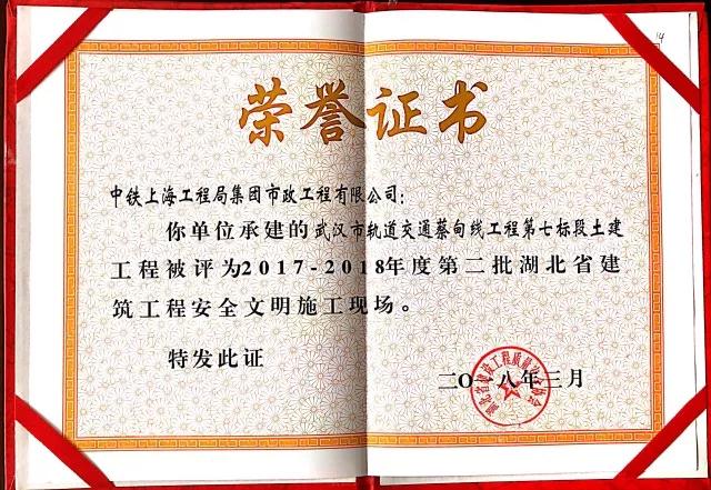 日前(qian),從湖北省建(jian)(jian)設工(gong)(gong)程質(zhi)量安全(quan)協會傳(chuan)來喜訊,中鐵上(shang)海工(gong)(gong)程局集(ji)團市政公司承建(jian)(jian)的武漢(han)市軌道交通(tong)蔡甸線工(gong)(gong)程第七標(biao)段土建(jian)(jian)工(gong)(gong)程榮(rong)獲“湖北省建(jian)(jian)筑工(gong)(gong)程安全(quan)文明施工(gong)(gong)現場”榮(rong)譽稱號。